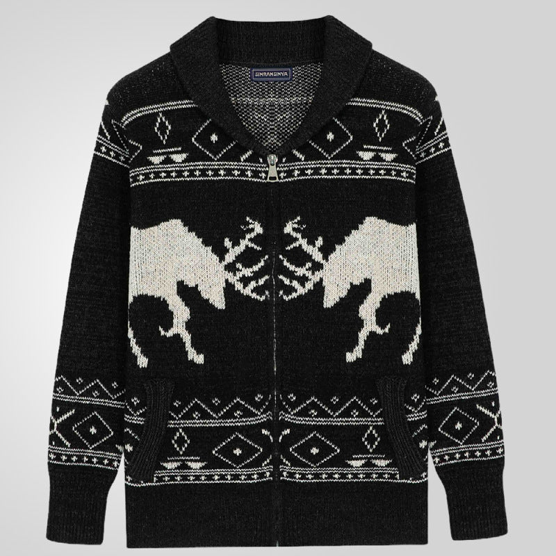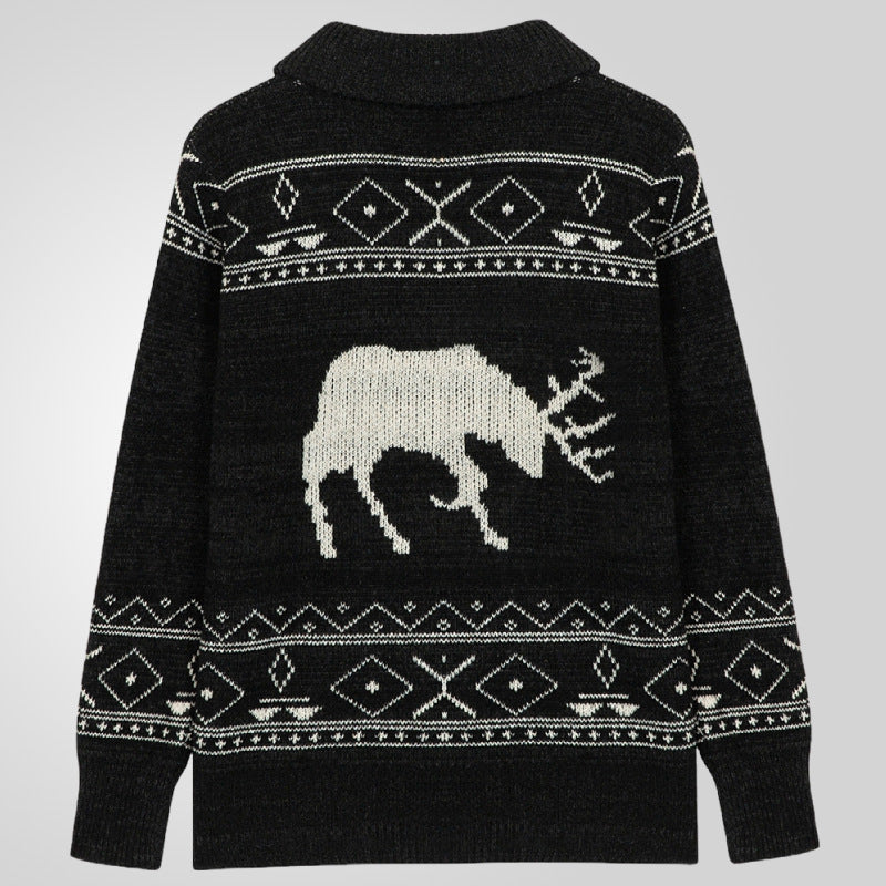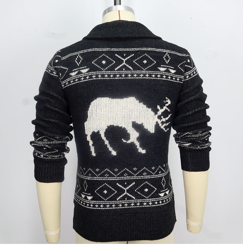 Black Deer Jacquard Zipper Long-sleeved Knitted Jacket