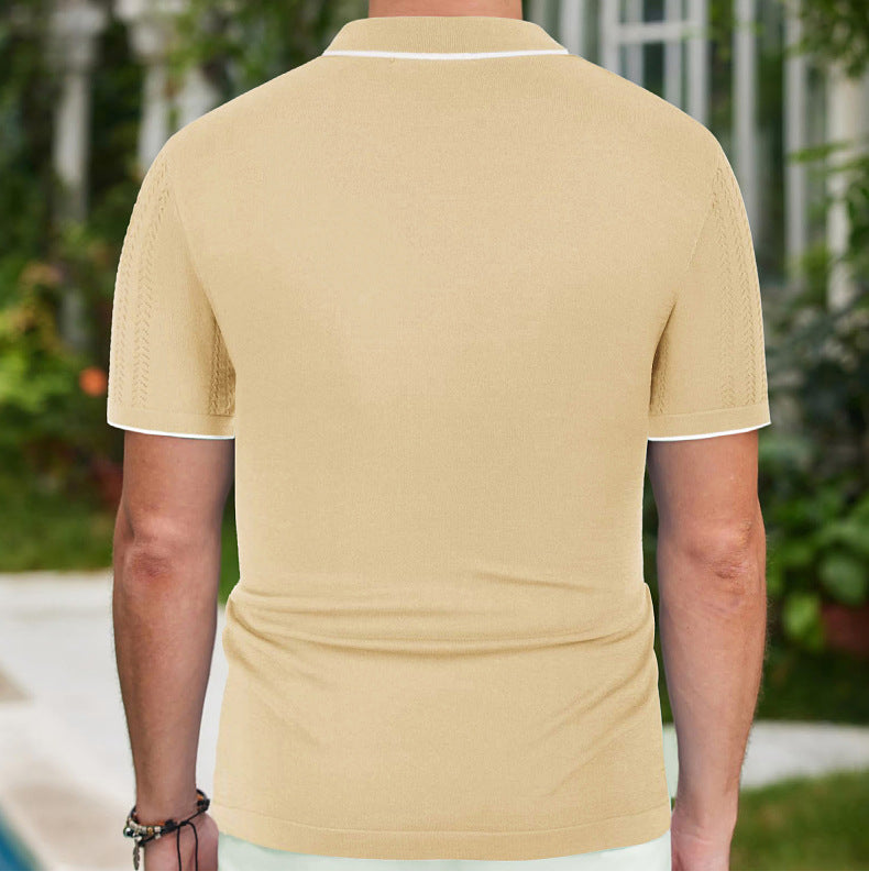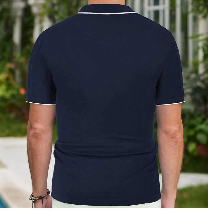 Cardigan knitted sweater, casual thin business knitted polo shirt