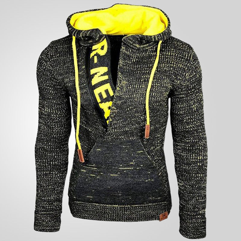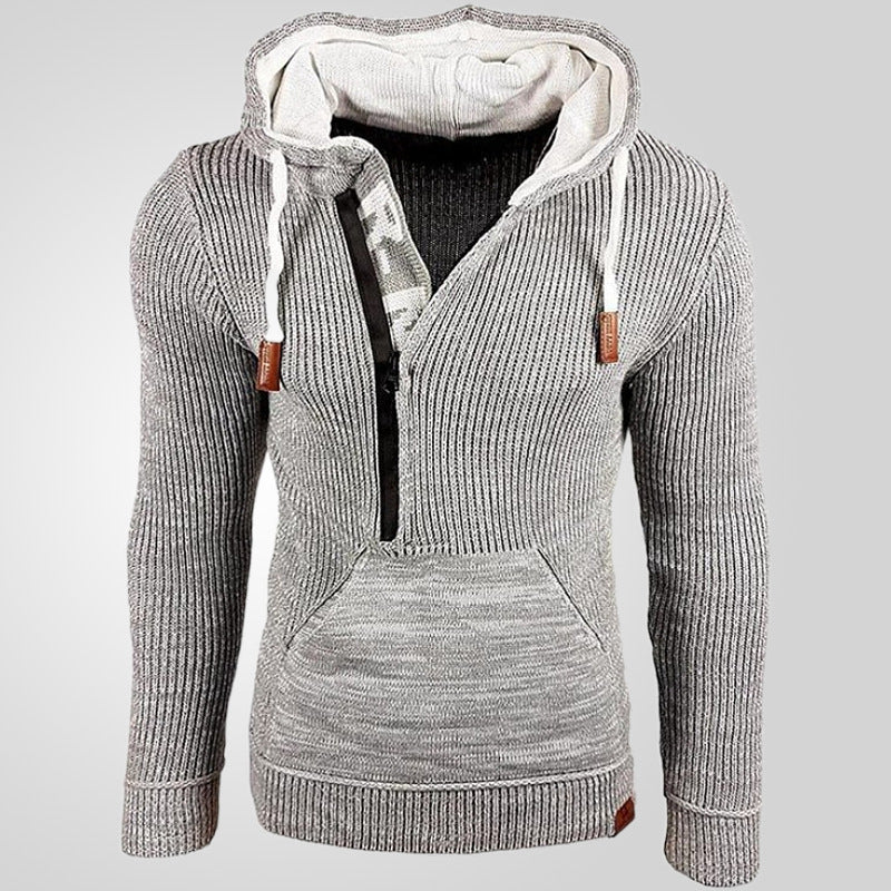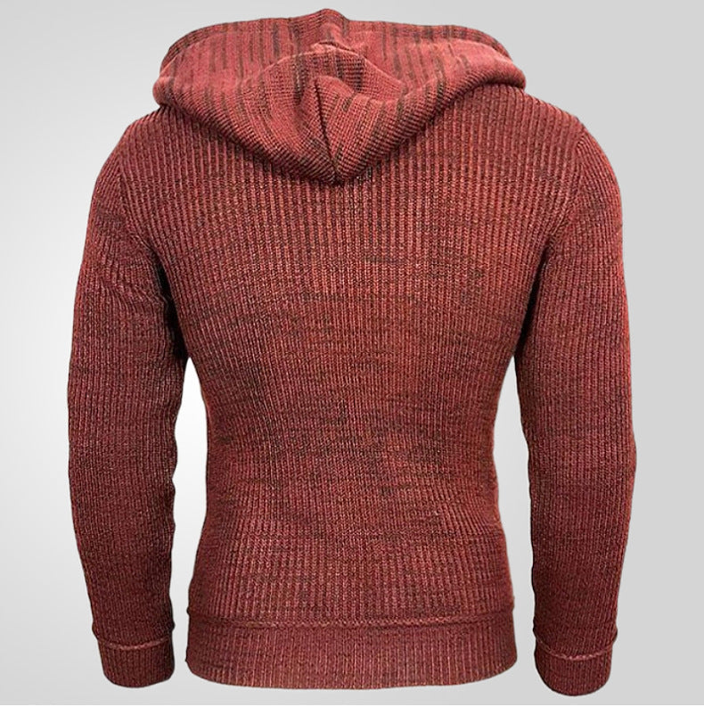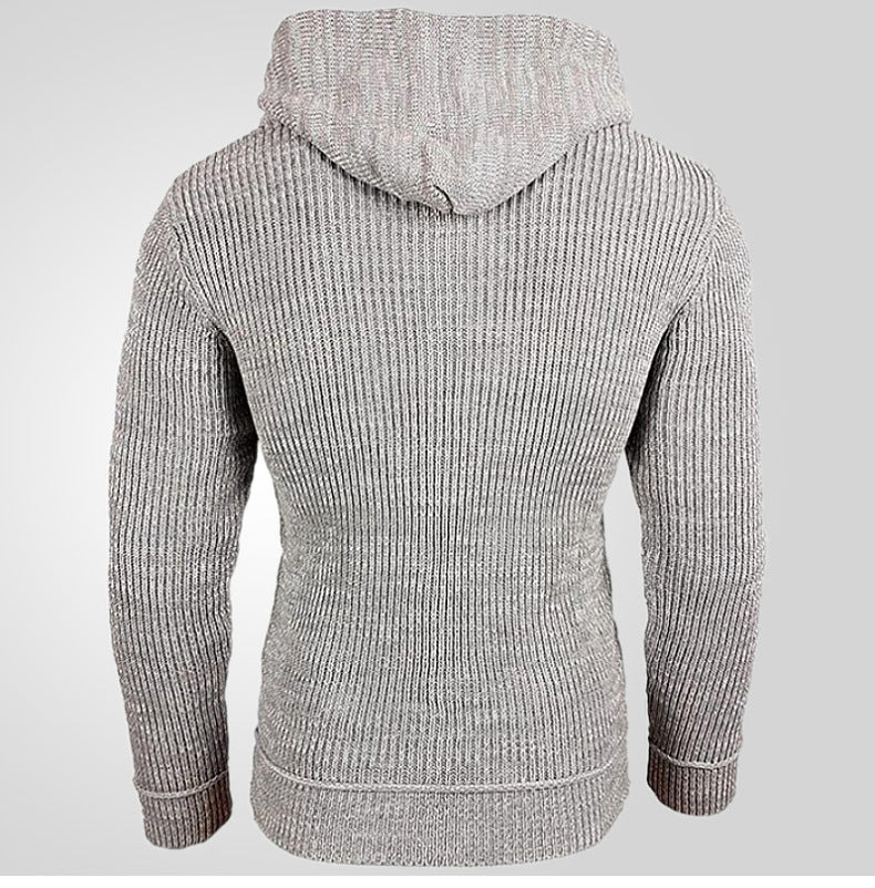 Hooded Pullover Knitted Sweater, Long-sleeved Knitted Sweater