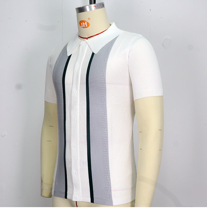 Men's Knitted Sweater, Lapel Pullover Casual Striped Polo Shirt