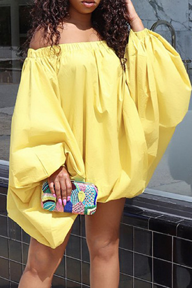 Tag | CASUAL , Long Sleeve , Solid , Mini , Loose , Solid Color , One Shoulder , Bat-wing Sleeve , Polyester , Split joint , Lantern skirt |