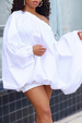 Product Name | Purple Casual Solid Split Joint One Shoulder Lantern Skirt Dresses |