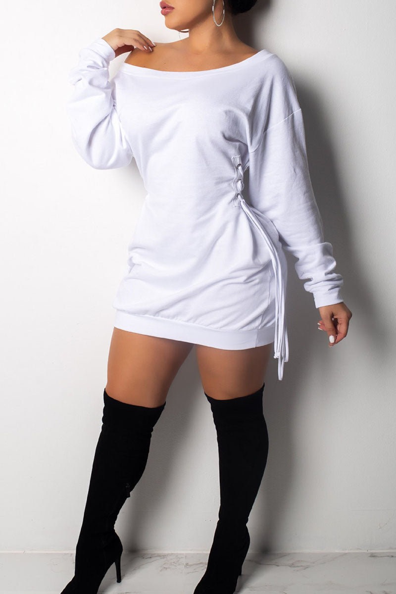 Tag | Long Sleeve , Solid , Sexy , Mini , Solid Color , Off The Shoulder , Straight , Frenulum , Short , Polyester , Regular sleeve , Split joint , Fold , Draw string |