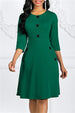 Tag | CASUAL , Solid , Fashion , Patchwork , O Neck , Solid Color , Polyester , Regular sleeve , Regular , Knee Length , A Line , Three Quarter |