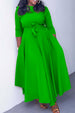 Product Name | Green Casual Solid Bandage Patchwork O Neck Dresses |