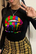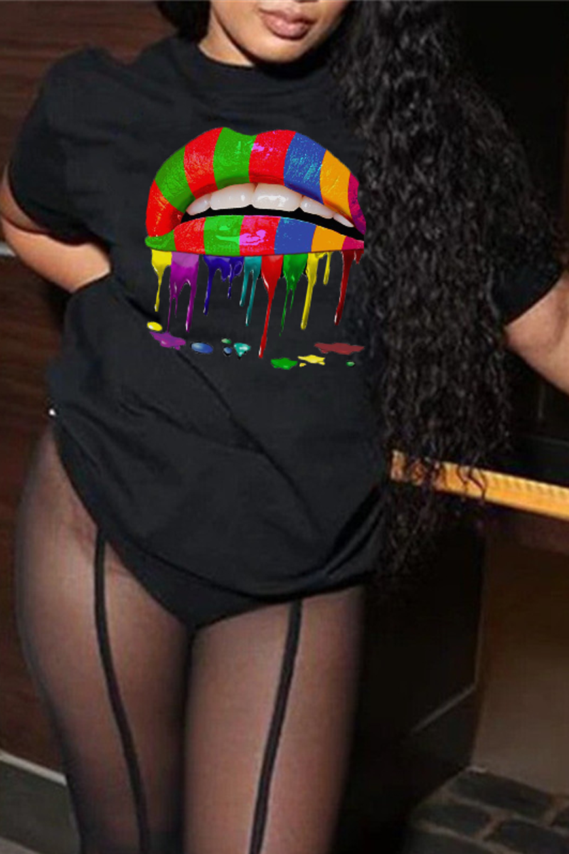 Product Name | Blue Street Lips Printed Patchwork O Neck Tops |