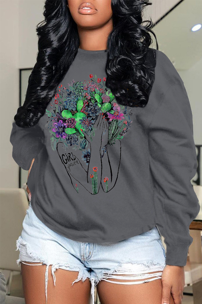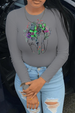 Product Name | Grey Casual Street Print Patchwork O Neck Tops |