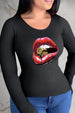 Tag | Long Sleeve , Patchwork , Cotton , Skinny , O Neck , Positioning Print , Pullover , Street , Lips Printed , Regular sleeve , Regular , Small Elastic |