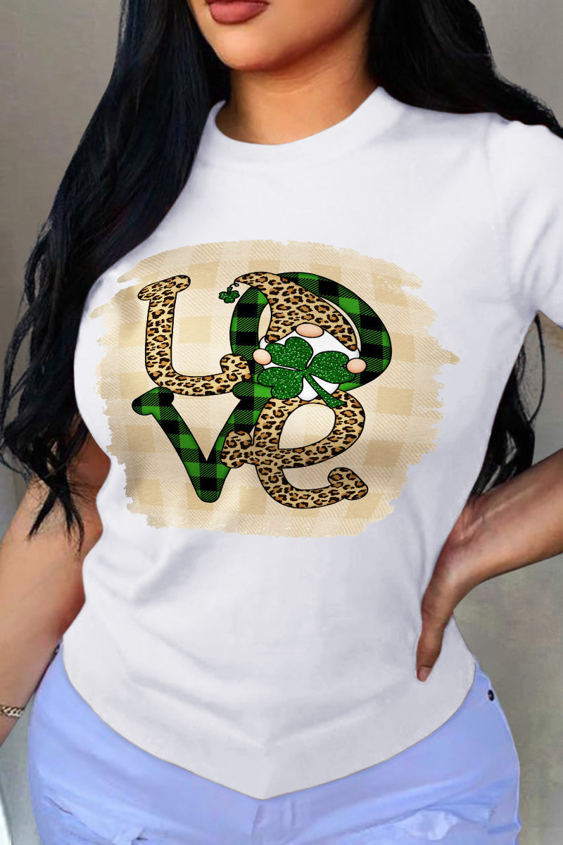 Product Name | White Street Party Print Patchwork O Neck T-Shirts |