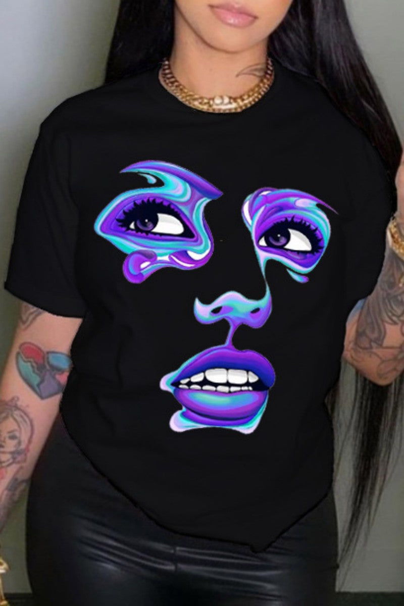 Product Name | Black Casual Print Basic O Neck T-Shirts |