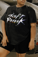 Product Name | Black Casual Street Print Letter O Neck Tops |