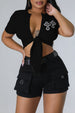 Tag | CASUAL , V Neck , Sexy , Print , Short Sleeve , Bandage , Positioning Print , Short , Polyester , Yes(Elastic) , Regular sleeve , Regular |