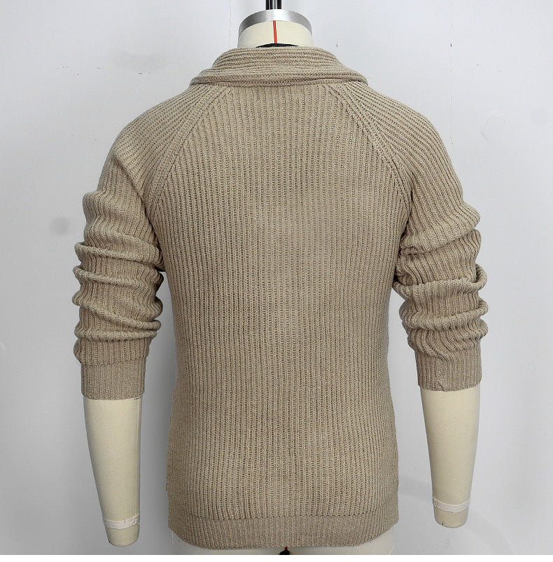 Solid Color Lapel Neck Long-sleeved Outer Wear Knitted Sweater